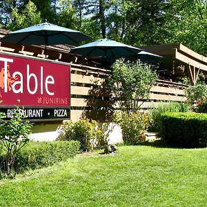 Located within The Junipine Resort, guests can indulge in a truly unique dining experience at the renowned restaurant, The Table. This American cuisine restaurant offers a rustic ambiance with seasonal menus featuring wild foods and ethically sourced meats and seafood. Guests can also relax and unwind at the lounge bar with a selection of wines and locally-made craft beers. In addition, The Junipine Resort offers the option of enjoying a cooked-to-order breakfast in the restaurant or having a delightful meal in the comfort of their own room's fully furnished kitchen.